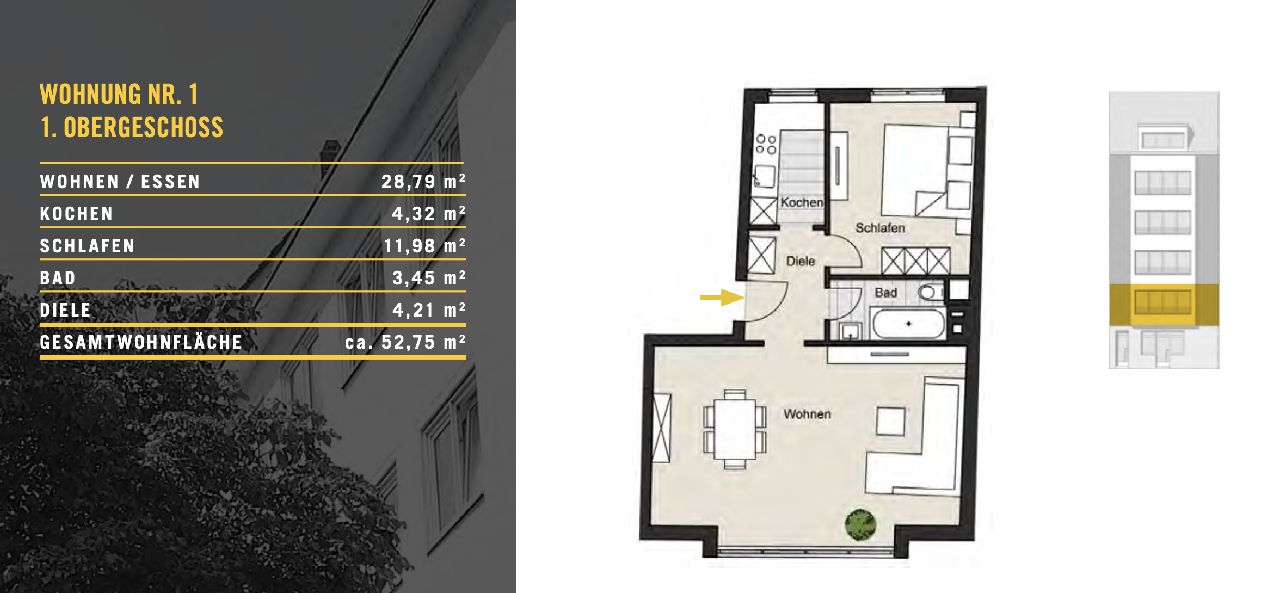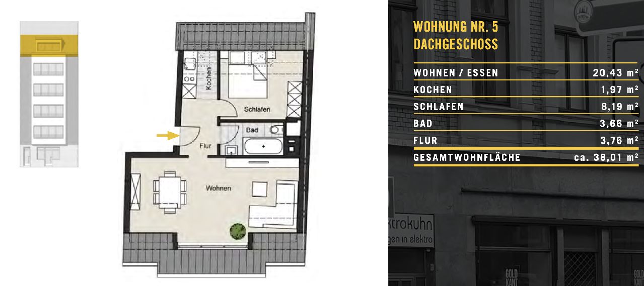 Das Mehrfamilienhaus beherbergt 5 Wohnungen mit je knapp 53 Quadratmetern und sind sämtlich vermietet. Das Dachgeschossdomizil bietet mit gleichem Grundriss circa 38 Quadratmeter Wohnfläche. Alle Einheiten verfügen über einen Wohn-Essbereich, ein separates Schlafzimmer, eine abgetrennte Küche, Flur und Wannenbad. Diese Aufteilung bietet maximale Flexibilität in der Nutzung und macht die Wohnungen für eine breite Mieterzielgruppe interessant.