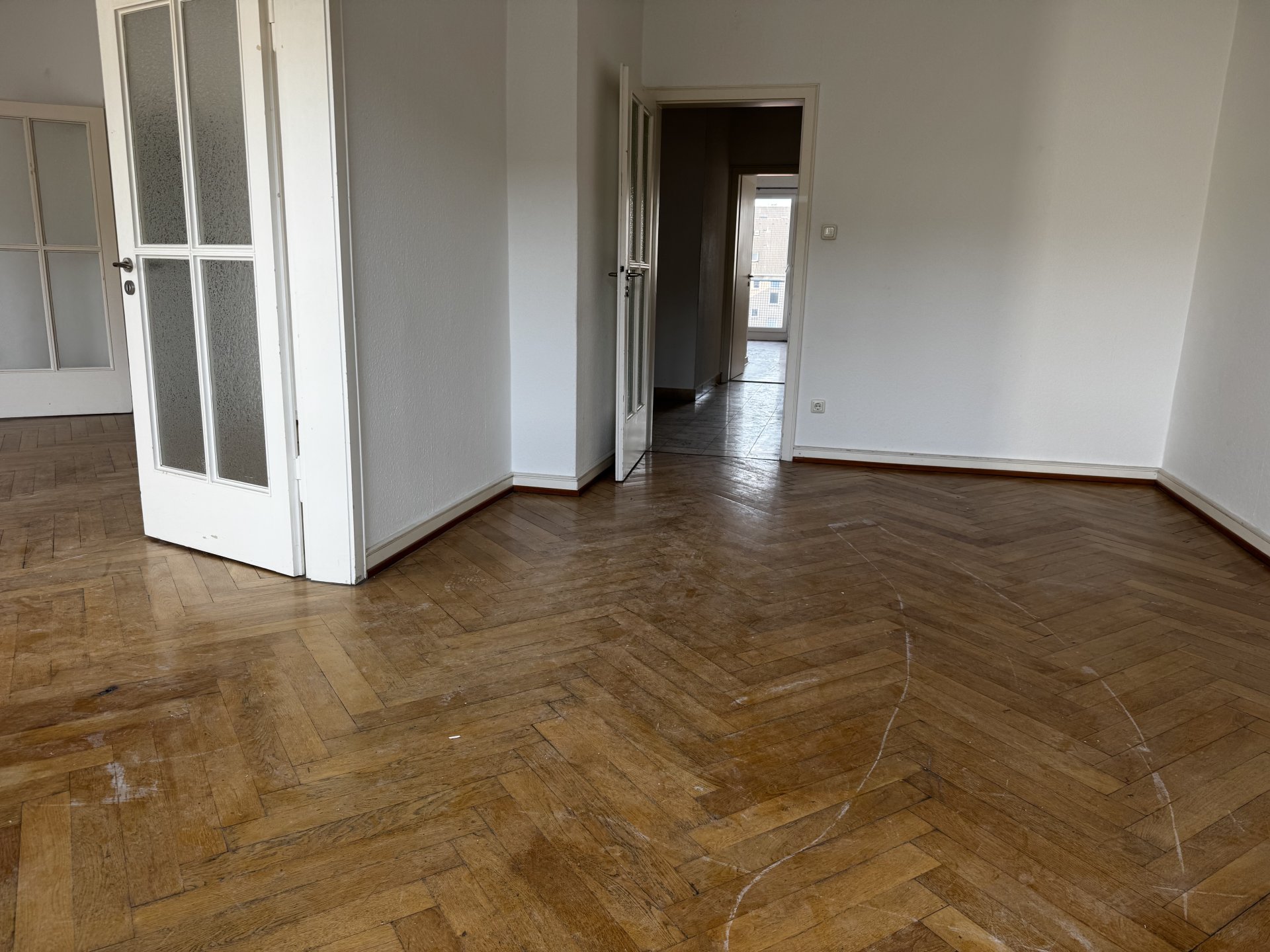 Willkommen in Ihrem neuen Zuhause! Diese großzügige 3-Zimmer-Wohnung erstreckt sich über beeindruckende 99 m² und befindet sich in einem charmanten, fünfgeschossigen Gebäude aus dem Jahr 1948. Die Wohnung im vierten Stock wird nach Auszug des aktuellen Mieters Ende September umfangreich modernisiert – mit neuen Ecbhtholz-Parkettböden, neuer Elektrik und neuem modernen Bad und frisch tapeziert und gestrichen. Die Wohnung verbindet eine perfekte Kombination aus historischem Flair und zeitgemäßem Komfort.